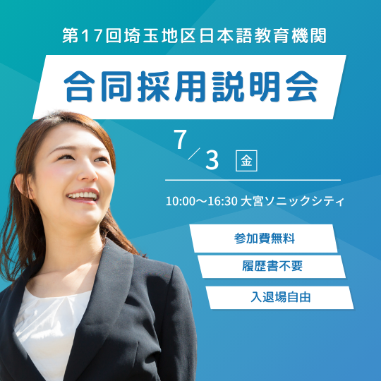 - 第17回埼玉地区日本語教育機関合同採用説明会開催のお知らせ