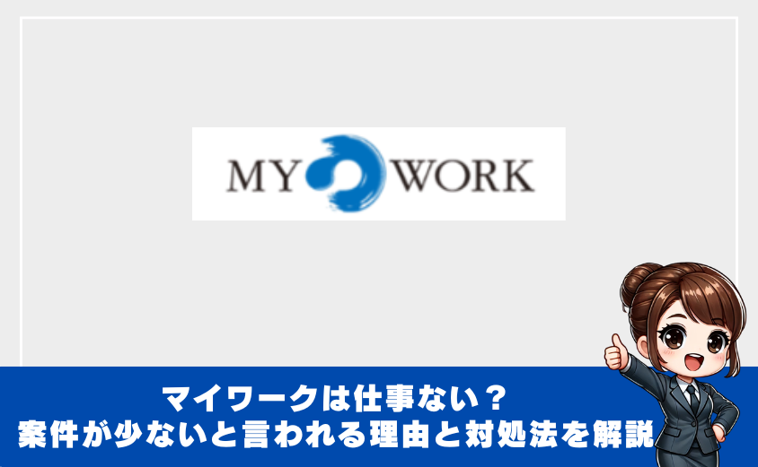 「マイワーク」について調べていると、「仕事ない」「案件が少ない」といった口コ… -
