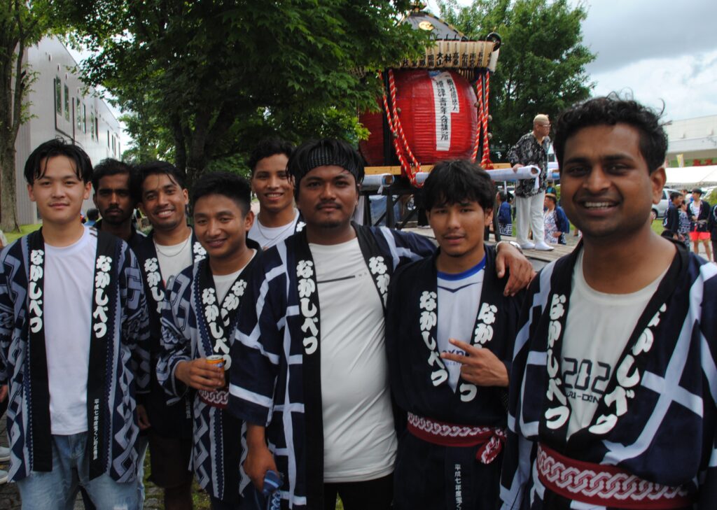 また当校の学生たちは、地域との交流に非常に積極的です。「日本人と交流したい」「日本文化を体験したい」という思いが強く、町のお祭りやイベントには率先して参加しています。今年のお祭りでは7割以上の学生が参加し、お神輿を担いだり、和太鼓を叩きながらパレードに参加したり、町民の方々と一緒に盆踊りを踊ったり、運営を手伝ったりと大活躍でした。中標津は行事が多い町で、もうすぐクロスカントリー大会があるんですが、そこでも60名の学生が参加を予定しています。