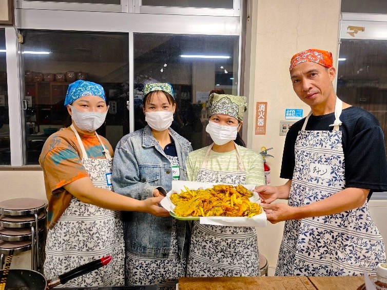 みんなで畑で野菜作りをしたり、料理教室を行ったりしています。外国の方、日本の方が楽しめるようなイベントを地域の方と一緒に企画、運営しています。先日は垂水市の食生活改善推進委員の方々と一緒に、外国人へ向けた料理教室を開き、みんなで楽しみました。