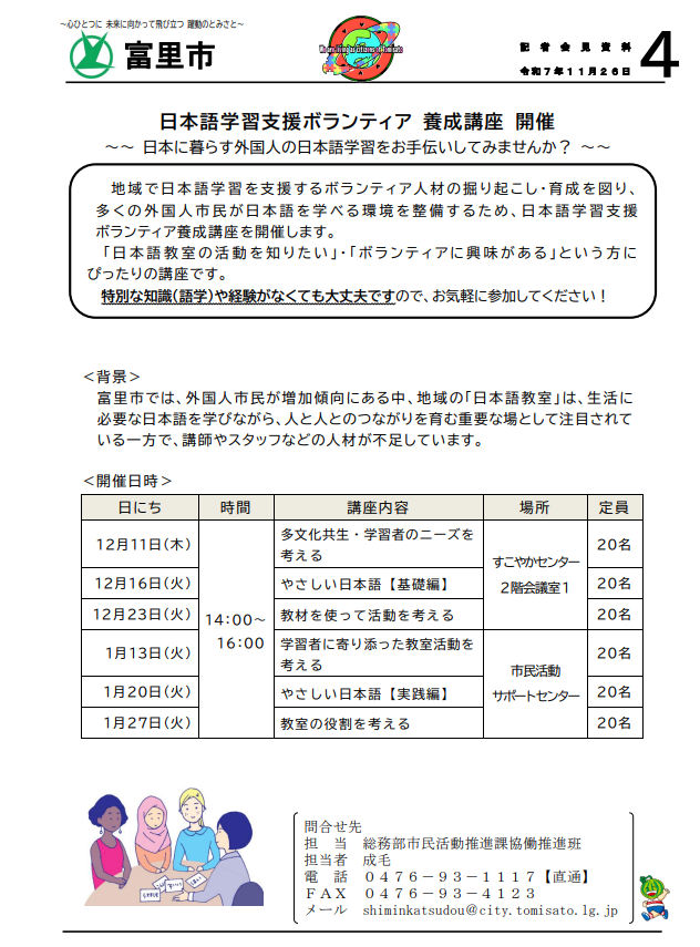 そのために私たち行政としては、そういったルールの周知・啓発に力を入れていきたいと考えていますが、その上でも「言葉」はとても重要な要素だと思っています。富里市のみならず、日本全体で定住する外国人が増えている今、日本語を教える人材の必要性は確実にありますし、その重要性も今後更に大きくなっていくのではないかと思います。
