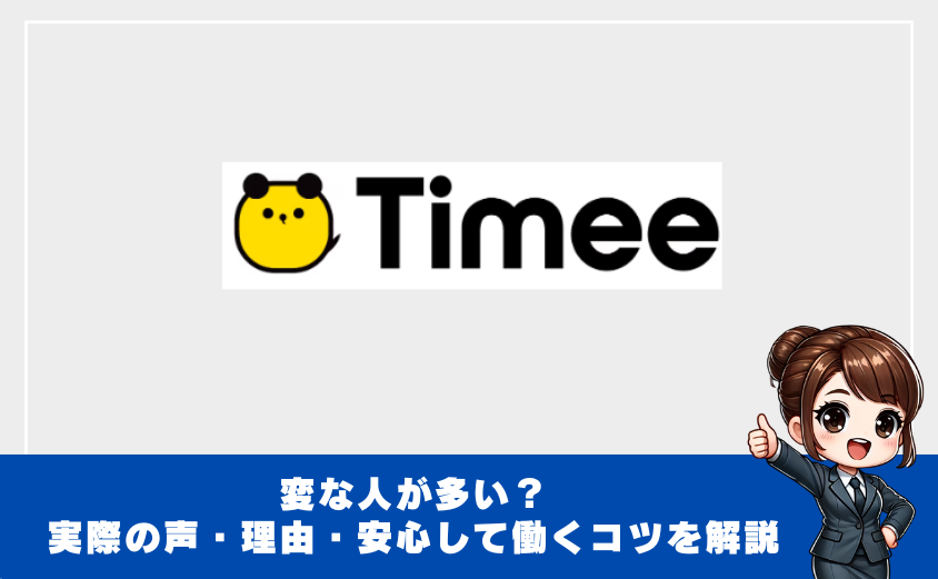 SNSや口コミで「タイミーって変な人多いよね」「怖い人に当たった」といった声を見かけたことはありませんか? 確かに、単発・短期バイトではさまざまな人が集まるため、「変な人に当たる」ケースもゼロではありません。 しかし、実際には職場や時間帯、業... -