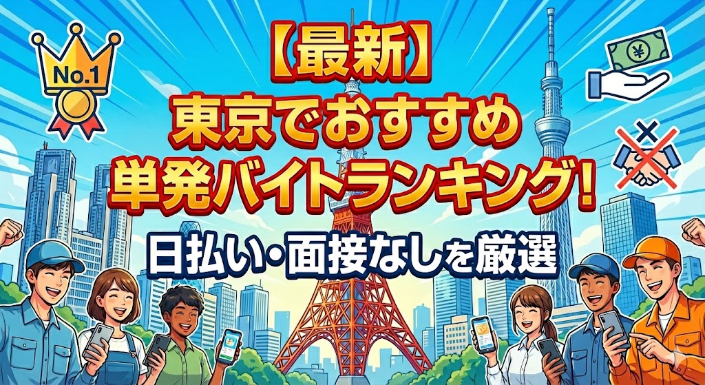 「東京で単発バイトを探しているけど、どのサービスを使えばいいかわからない」 「面接なしで今日から働けて、給料もすぐもらえるアプリってどれ?」 そう悩んでいる方は多いのではないでしょうか。 東京は全国でも圧倒的に単発バイトの求人数が多く、飲食... -