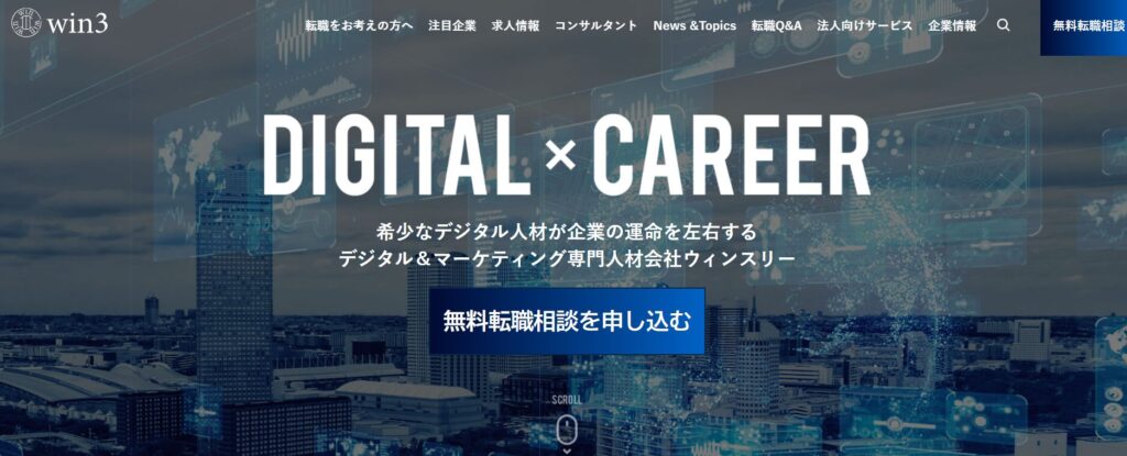 『ウィンスリー』は、デジタル分野に特化したハイクラス転職エージェント。
