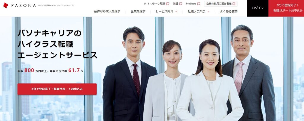 『パソナキャリア』は、人材ビジネスの先駆者として長年にわたって実績と信頼を積み重ねてきたハイクラス向け転職エージェントです。