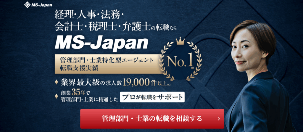 『MS-Japan』は、管理部門・士業に特化したハイクラス向け転職エージェントです。