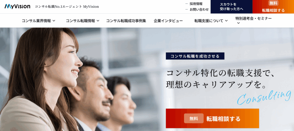 『MyVision』はコンサル等のハイクラス転職に強みを持つ転職エージェントです。