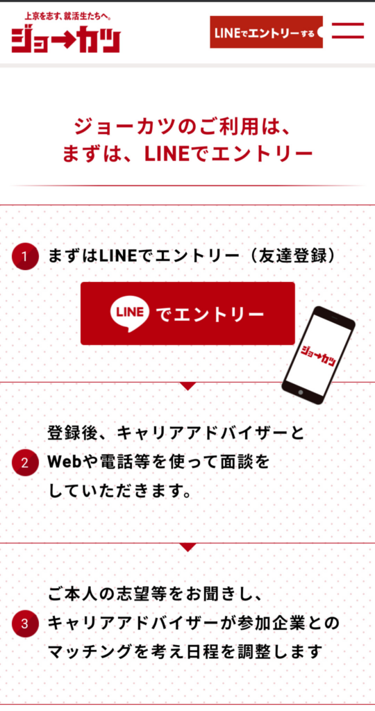 『ジョーカツ』は、地方から東京への就職を目指す学生向けの就活エージェントサービスです。