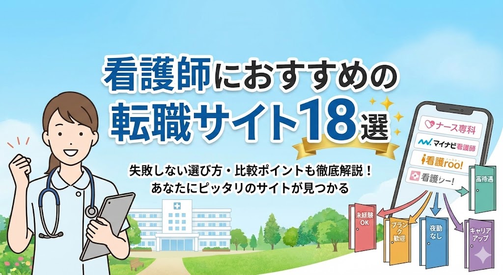 実績・求人数・口コミ評価をもとに厳選した看護師向け転職サイト18社を比較し、それぞれの特徴を分かりやすく紹介します。