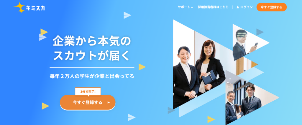 キミスカ』は、企業からの本気のスカウトだけに対応したい人におすすめの就活サイトです。