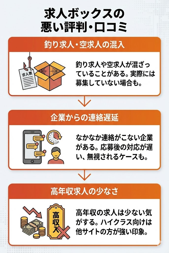 ハイクラスや高年収の求人に絞って探している方にとって、求人ボックスは不満を感じやすいです。