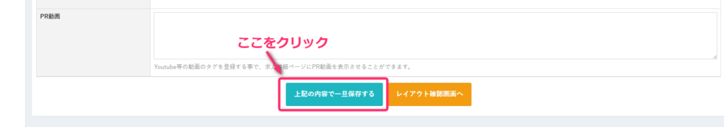 求人作成ページ最下部にある「上記の内容で一旦保存する」ボタンをクリックしてください。