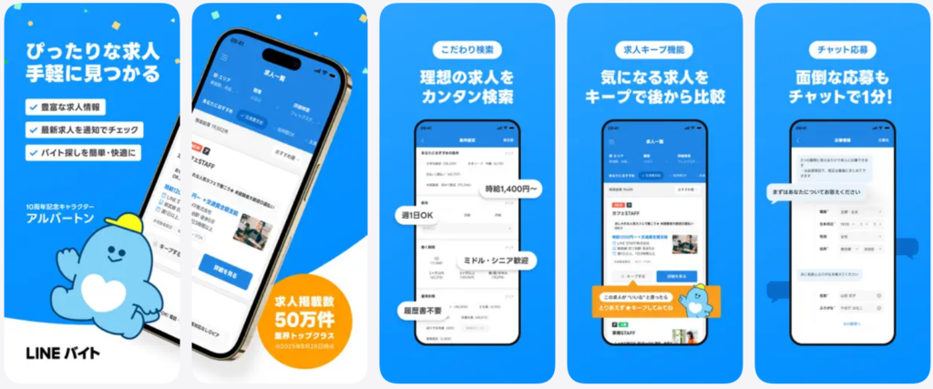 求人サービス自体はLINEが公式に提供していることもあり、安心して利用できる点もポイントです。