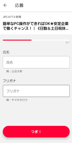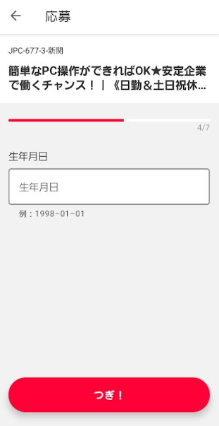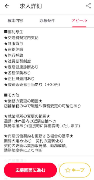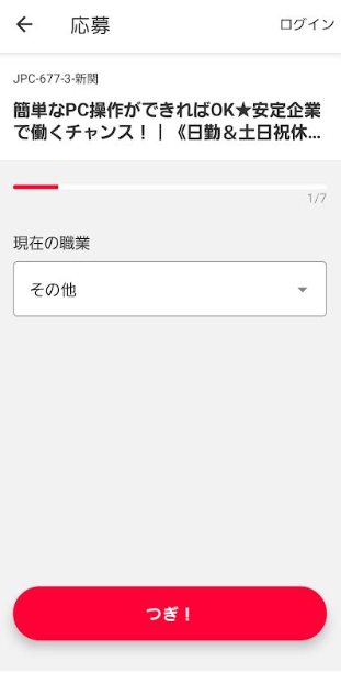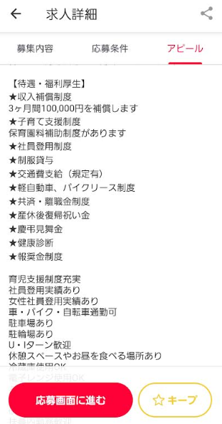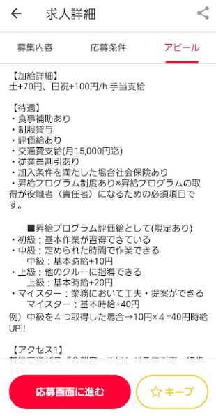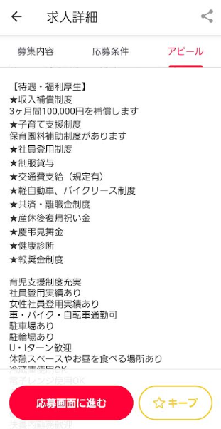 気になる求人に応募したい場合は、画面下の「応募画面に進む」をタップします。
