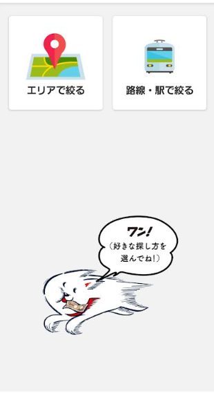 - 「エリアで絞る」または「路線・駅で絞る」を選択