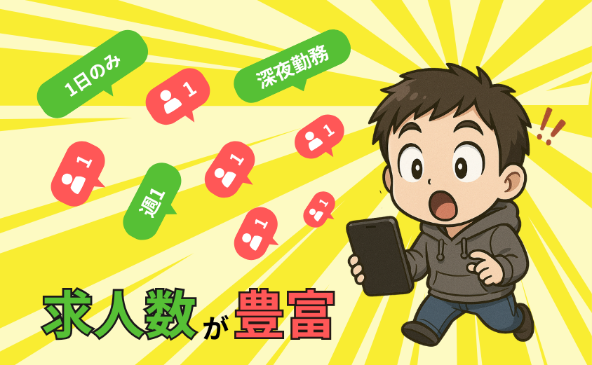 - 単発から短期、シフトなど働き方も柔軟に選べる