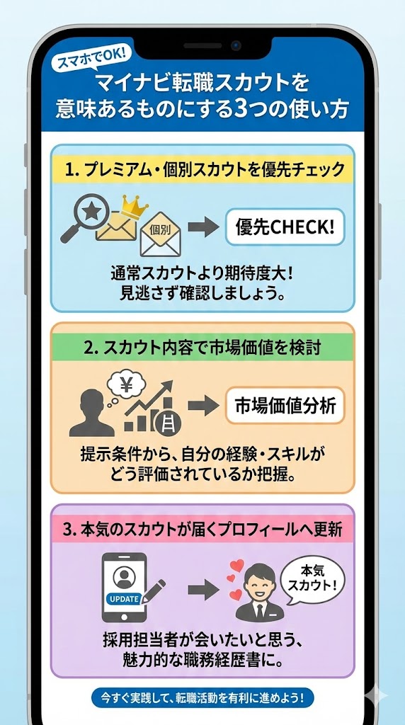 ここでは、マイナビ転職スカウトを有効に活用するための使い方を解説します。