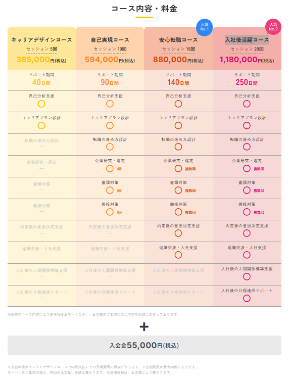 ただし、オフラインでのキャリアコーチングは実施していません。