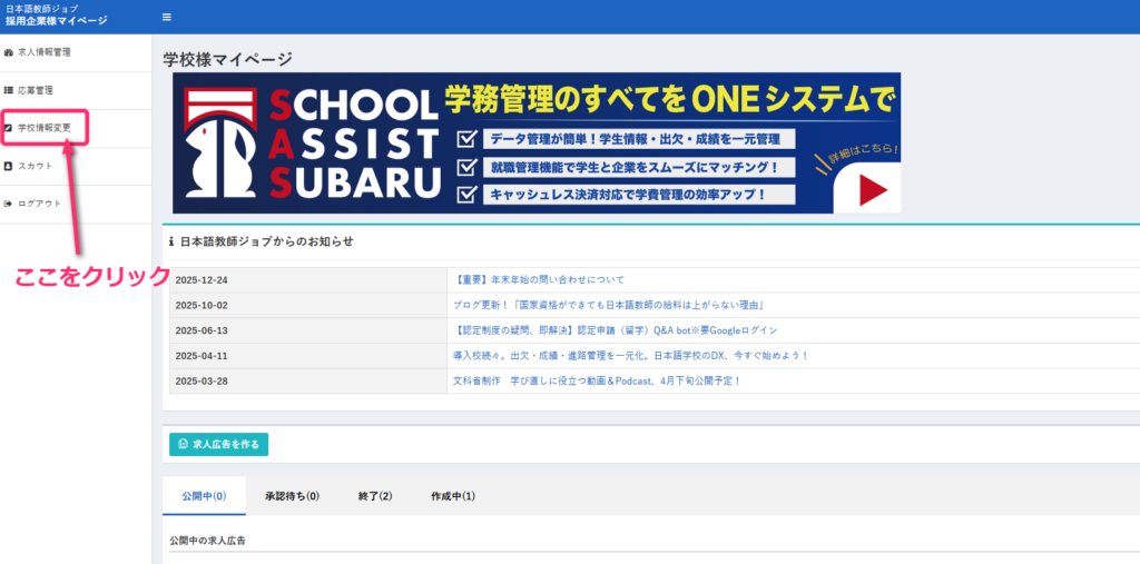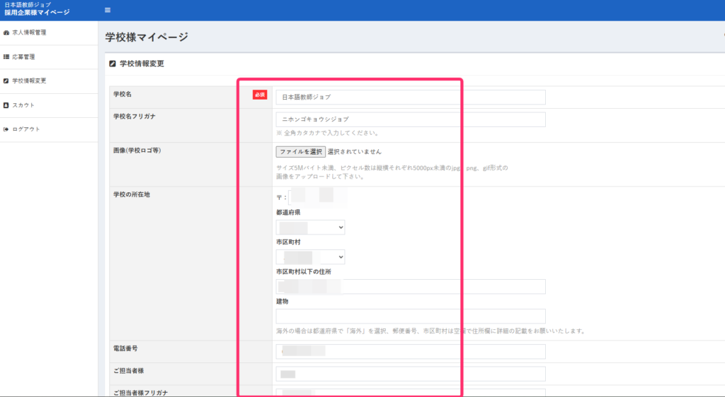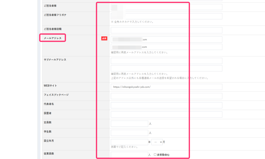 本ページでは、日本語教師ジョブの学校(教育機関)様マイページに登録されている情報(メールアドレス・担当者名など)を変更する方法をご案内します。