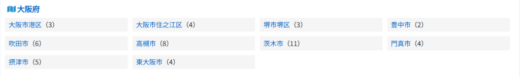 一方で大阪府は合計50件と、東京と比べても母数が小さく、求人が出るエリアも一部に集中しています。