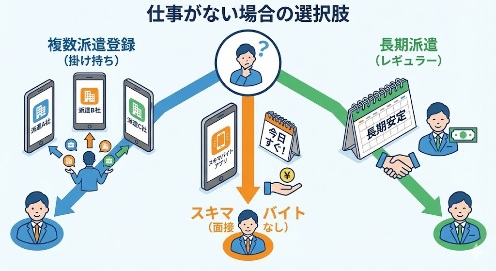 他の登録制派遣会社にも複数登録して掛け持ちする