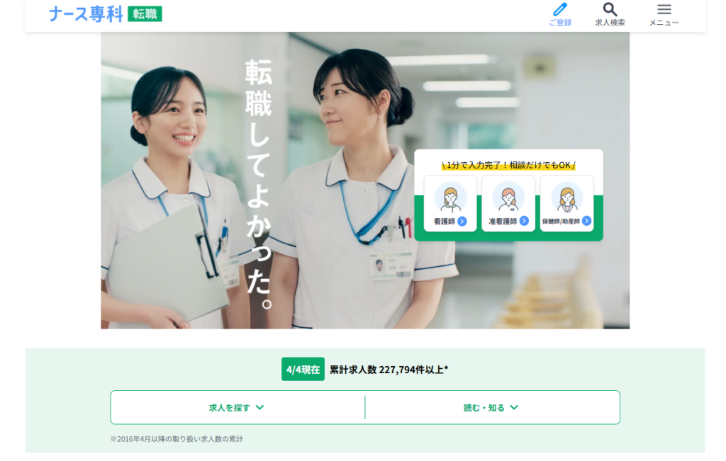 おすすめ特徴・年間10万人の看護師に利用されている安心感がある