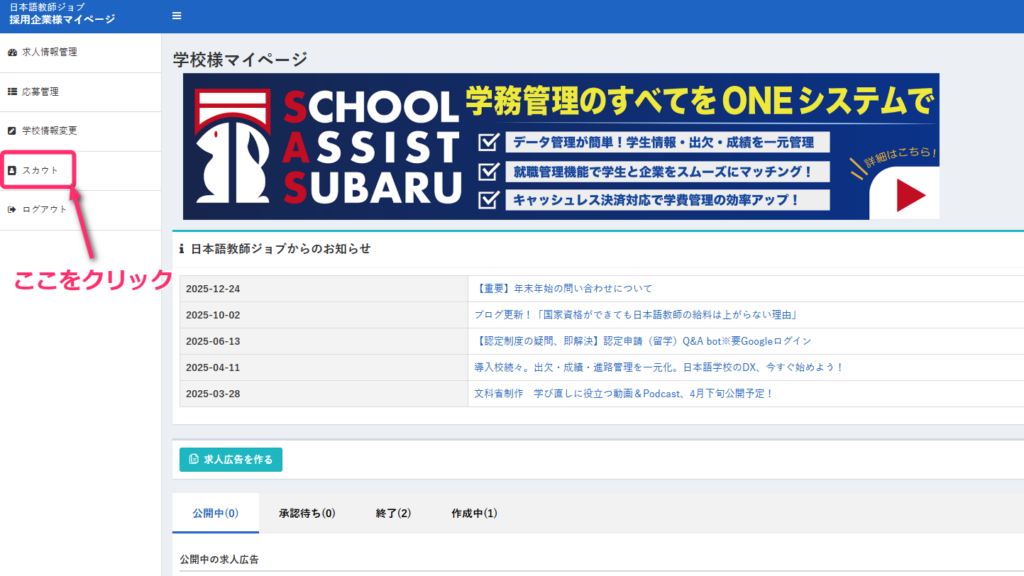 本マニュアルでは、「日本語教師ジョブ」のスカウトメール機能の使い方についてご案内します。