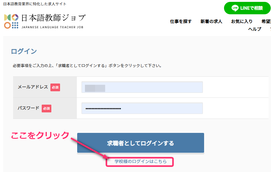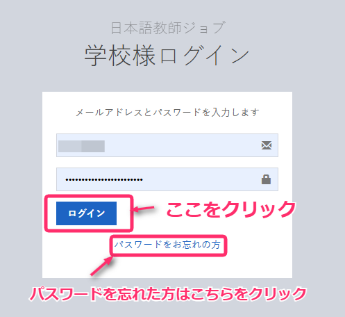 ログインページ:学校様ログイン|日本語教師ジョブ