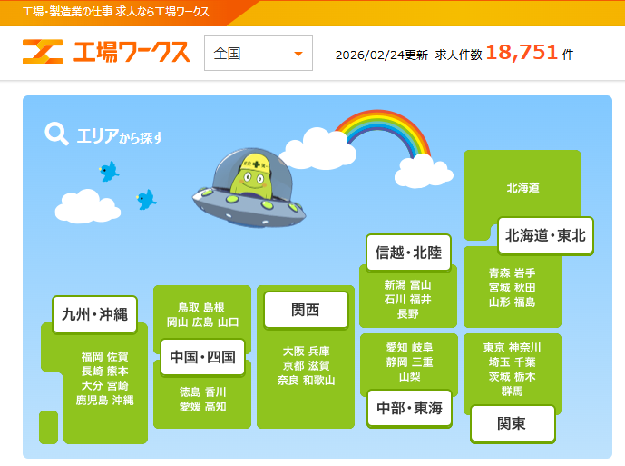 工場ワークス非公開全年代製造・工場なし全国製造業・工場系求人に特化。正社員〜派遣まで幅広く対応