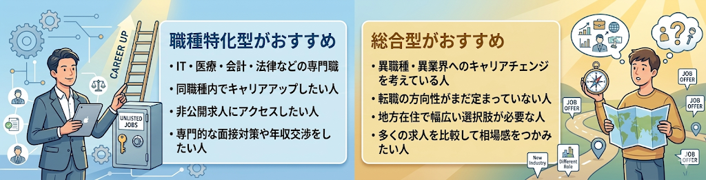 転職エージェントは、初めての転職でプロに相談したい人や、年収アップ・キャリアチェンジを目指す人に向いています。