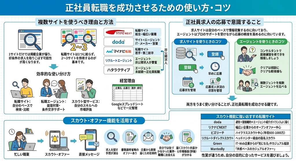 正社員転職を成功させるための使い方・コツ