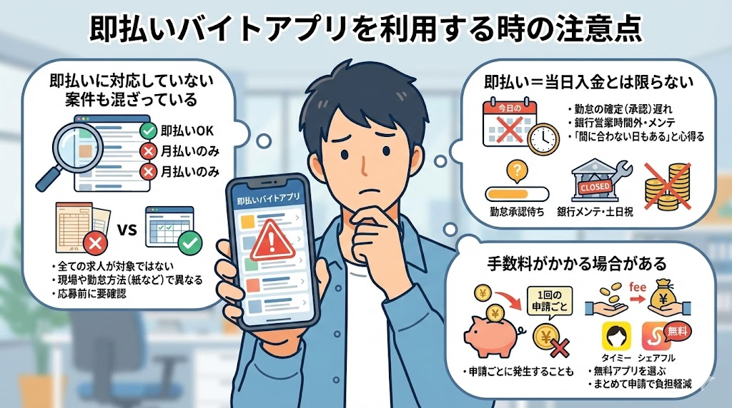 即払いアプリは便利なサービスですが、使う前に知っておきたい注意点があります。