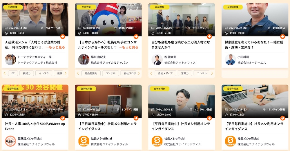 ベンチャー企業やスタートアップの社長に会えるため、比較的年齢が近い社長に会うことも可能です。