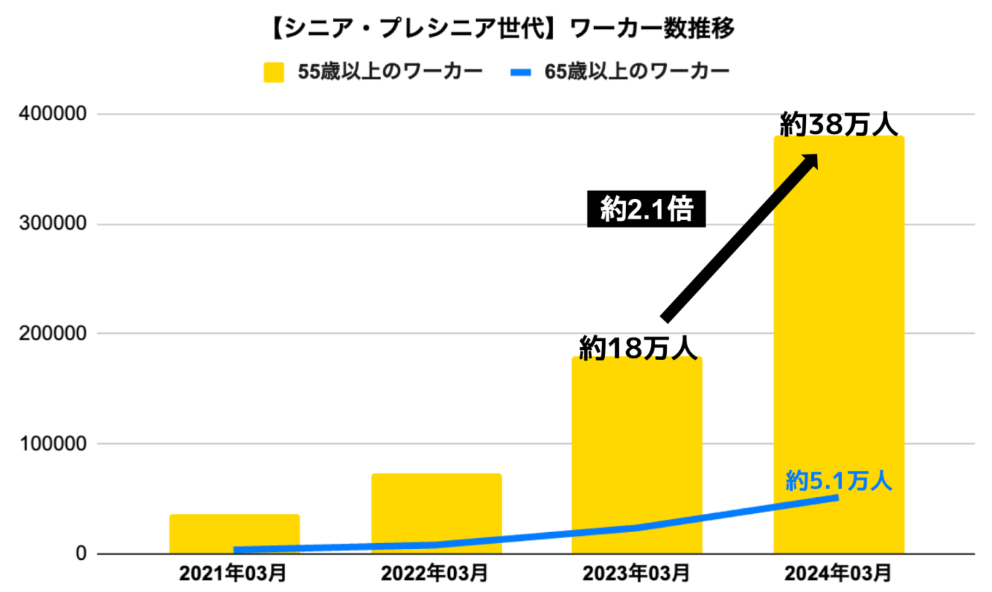 実際に中高年のワーカーの方々が多く活躍していることがうかがえます。