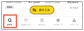 アプリ画面下の「さがす」のタブから求人検索をします。