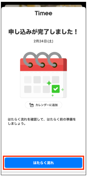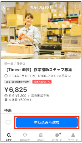 アプリに登録し求人に申し込むと、基本的に先着順でマッチングが成立。スピーディに働ける仕組みが特徴です。
