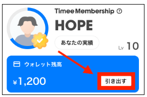 即時振り込みを希望する場合は、「マイページ」の「引き出す」を選択。