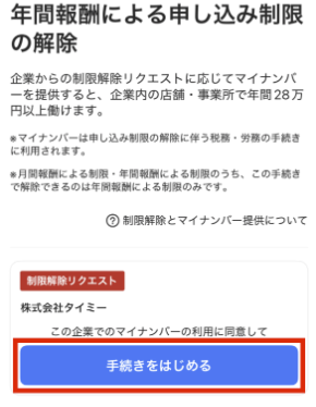 制限対象の企業がこの仕組みに対応しており、かつ企業側から申請があった場合、利用者がマイナンバーを提示することで制限が解除されます。