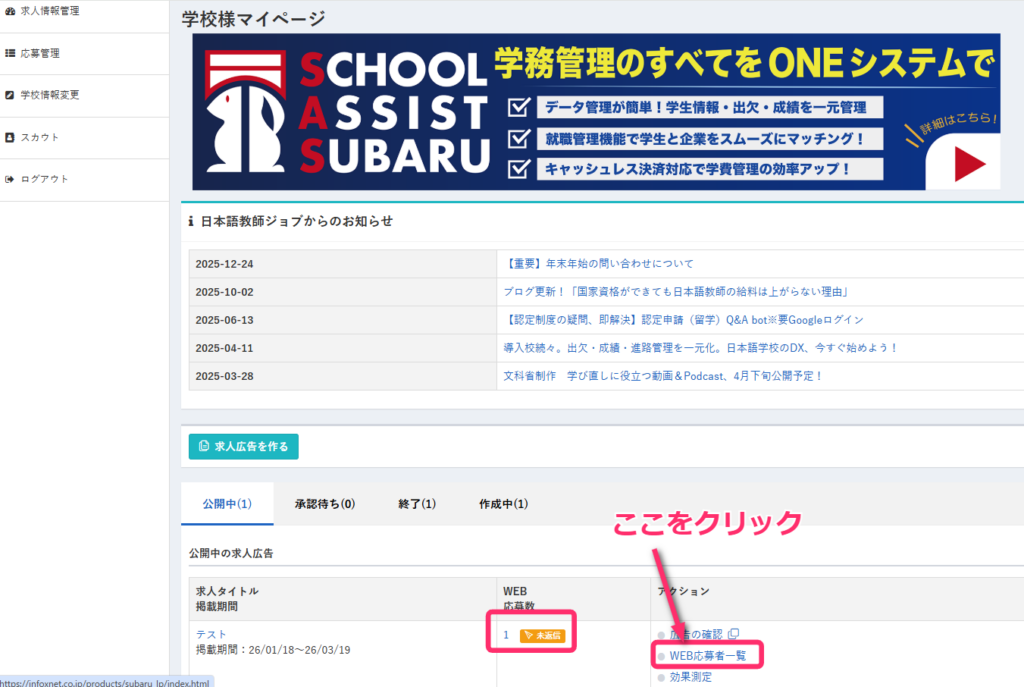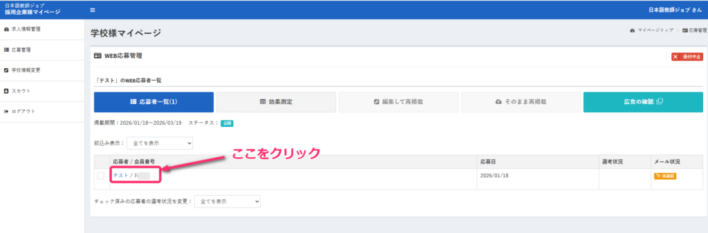 本ページでは、「日本語教師ジョブ」において求職者からWeb応募があった際の操作方法および対応手順についてご案内します。